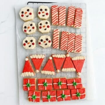 Turning my popular Frosted Sugar Cookie bars into 4 adorable Christmas cookie bars using just one 9x13" pan! This is the same recipe as the original but is 1.5x the amount of frosting.