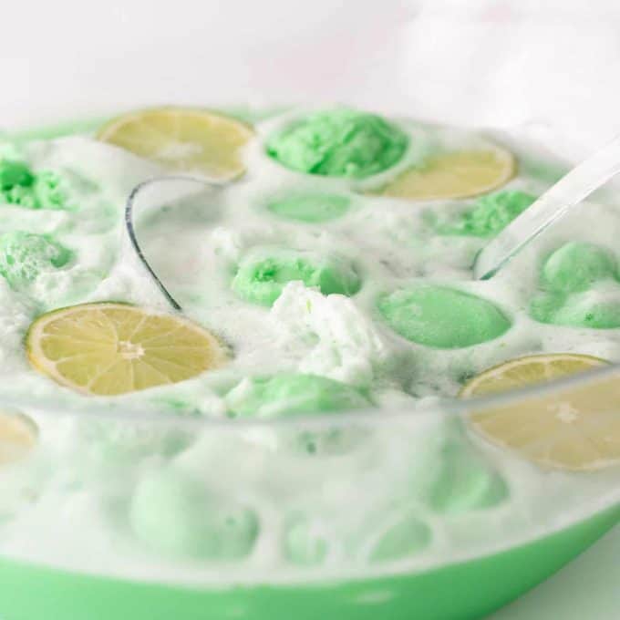 This lime sherbet punch is easy to whip up making it the perfect refreshing drink for summer parties! Simply pour everything into a punch bowl and it's ready to serve to crowds in less than 5 minutes.