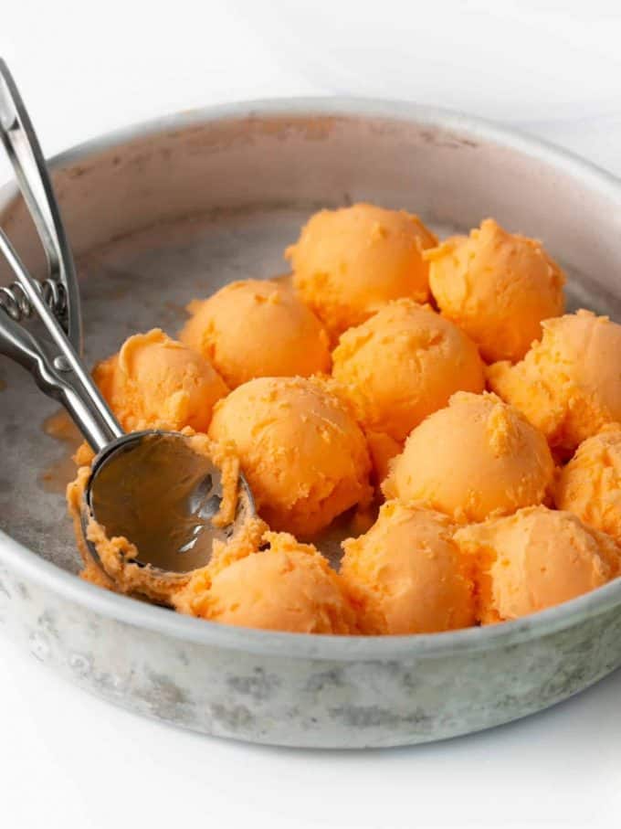 - For a crowd, scoop the sherbet ice cream into a large punch bowl (or large pitcher). If making for a party & wanting to impress, set aside half of the scoops, cover with plastic wrap, and freeze in a metal cake pan until you're ready to serve. This will give the punch bowl that signature sherbet punch look and help them stay frozen longer.