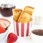Heat a large skillet to medium heat and add 1 tablespoon butter. Cook 6 strips at a time until each side is golden brown (usually about 1-2 minutes). You may need to add more butter to the pan between batches to prevent from sticking.